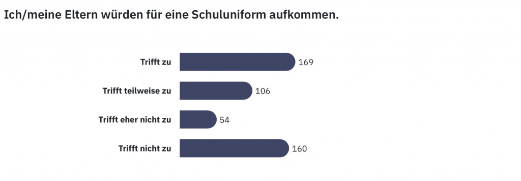 Außerdem kosten Schuluniformen auch viel, so können sich nicht alle eine leisten, wenn die Schule dies nicht übernimmt, was eigentlich nur an Privatschulen der Fall ist, da diese dort schon im Schulgeld enthalten ist. Auch stört es viele Schüler, dass man zwingend Röcke/Hosen tragen muss, was man aber mit geschlechtsneutraler Kleidung lösen könnte.